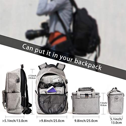 - 【Enough Storage Space】With detachable divider to adjust the space for camera, lens, flashs. Top mesh pouches & 2 velcro pockets at front and behind, can hold lens cloths, cables, batteries and other accessories.