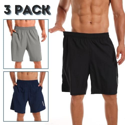 fovdtaa 3 Pack Mens Sports Shorts Quick Dry Shorts Gym Running Workout Activewear Men Running Shorts Black,Grey,Navy 2XL