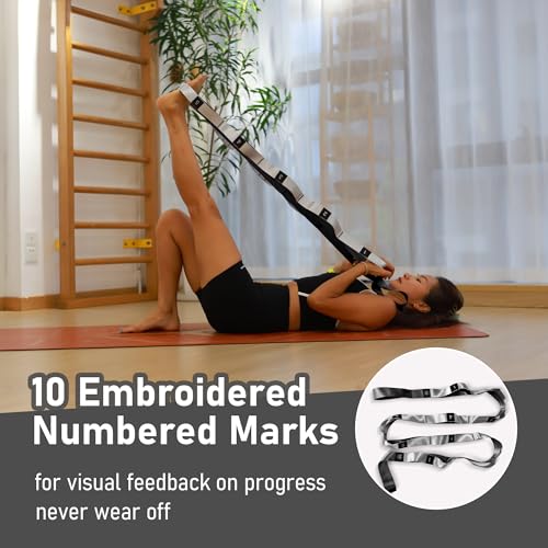 Foyer Nuage Stretch Bands for Exercise, Non Elastic Yoga Stretching Strap with Loops, 3.8cm x 2.45m, Stretching Bands for Physical Therapy, Yoga, Pilates, Dance, Gymnastics Exercise(Black)