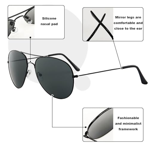 Sleek Pilot Style:This mens pilot sunglasses combines traditional and up to date methods by adding subtle design details. Their sleek and sophisticated design featuring iconic lens and frame capture the essence of timeless elegance, ensuring you stand out wherever you go.