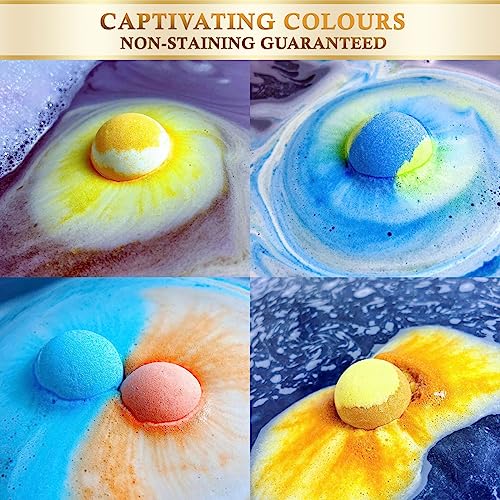 - FEEL THE GALAXY SENSATION: Each 60g planet bath bomb is carefully handmade with a unique luxurious fragrance for mental relaxation combined with dashing colours released within your bath tub to enhance your mood.