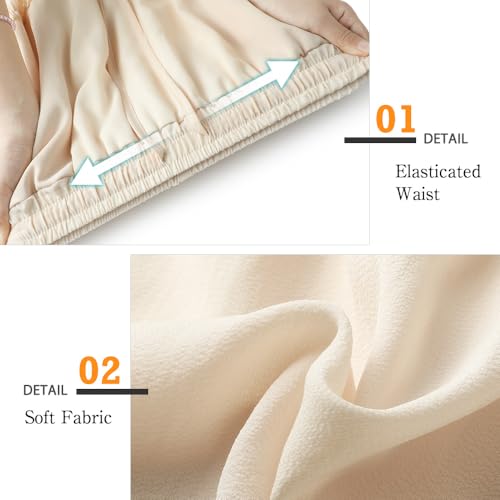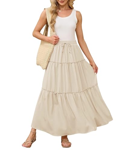 Genfien Women's Skirts Elegant Maxi Skirt Elasticated Waist Pleated A Line Skirts Boho for Party Summer Basic Casual Beige