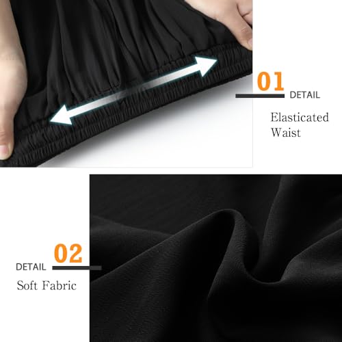 Genfien Women's Skirts Elegant Maxi Skirt Elasticated Waist Pleated A Line Skirts Boho for Party Summer Basic Casual Black