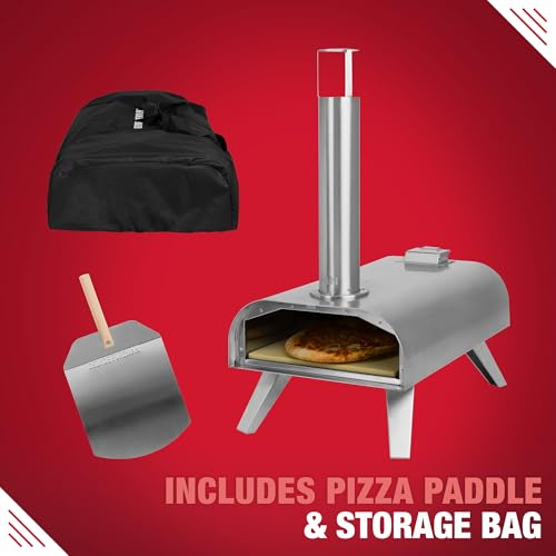 - INCLUDED EXTRAS – This pizza oven comes with a pizza paddle, wood pellet shovel and convenient carry bag