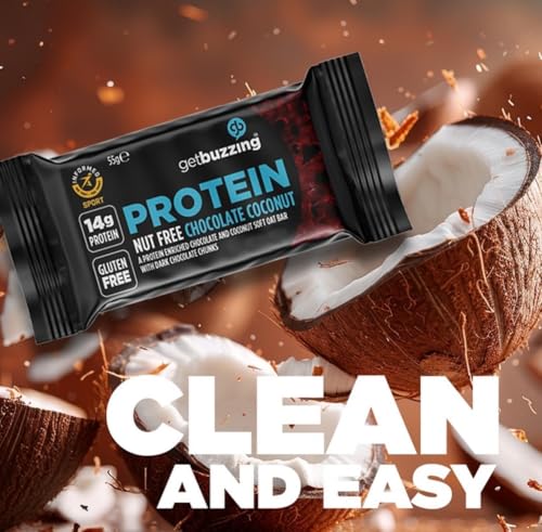 ![Getbuzzing Nut Free Oat Protein Flapjack Bars – Gluten Free Healthy Snack with Natural Ingredients, High Fibre & School Safe – 12 x 55g Pack – [Chocolate Coconut] - Supports Running, Cycling and Gym - Image 4](https://m.media-amazon.com/images/I/51vqXCz-y-L._SL500_.jpg)