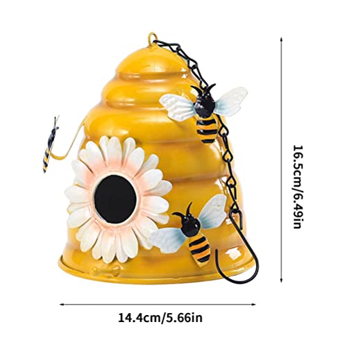 Ghzste Iron Beehive Birdhouse, Imitation Iron Beehive Bird Houses for Outside, Iron Decorative Hanging Birdhouses with Bee Ornaments, Outdoor Weatherproof