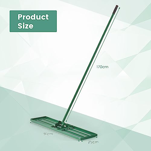 GiantexUK Lawn Leveling Rake 30”/36”/42”/46” x 10”, Powder Coated Steel Lawn Leveller with 77” Long Handle, Soil Leveling Tool for Garden Grass Golf Field Ground (36" x 10", Green)