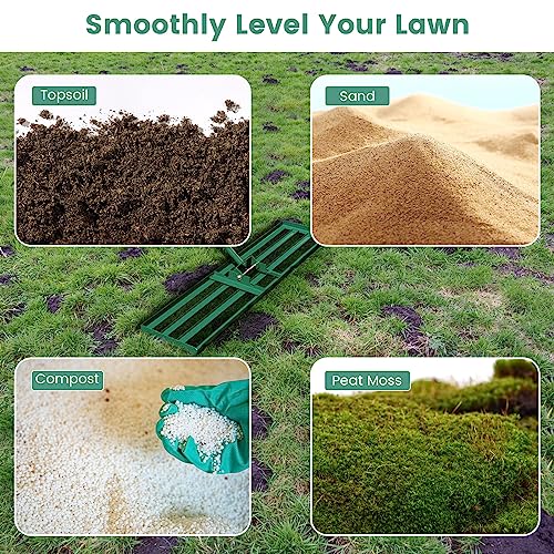 - Wide Application: The leveling tool makes gardening easier by helping you level the ground surface easily, ideal for all types of lawns in courtyards, gardens, pastures, farms, golf courses and football fields. You also can use this landscaping rake to level mother soil, sand, fertilizer and more.