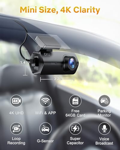 GKU 4K Dash Cam,Dash Cam Front with UHD 2160P, 5.8GHz WiFi DashCam,24H Parking Monitor,Night Vision,WDR,170° Wide Angle,Loop Recording,G-Sensor,DashCam Front Includes 64GB SD Card,Supports 256GB Max.