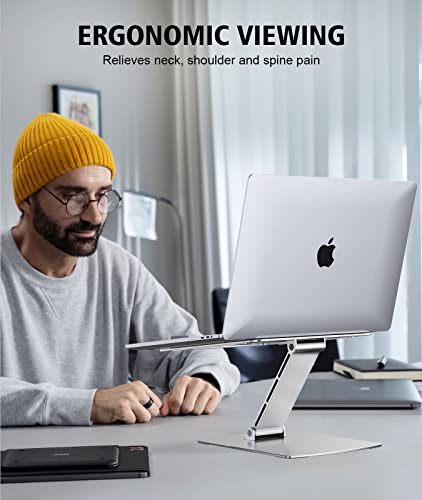 Glangeh Laptop Stand Adjustable Height, Ergonomic Air-Ventilated Laptop Riser Holder for Desk, Aluminum Foldable Laptop Cooling Pads Computer Stand Compatible with MacBook Air Pro (10-16")-Silver