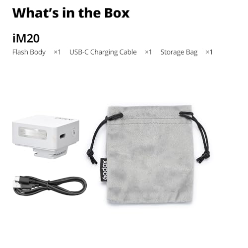 - Portable&Compact: Godox iM20 small camera flash of the size is only 2.4*2.05*1.77 inches and the weight is 78g. It can be easily slipped into your pocket or attached to your camera for convenient carrying. Whether it's sunny or cloudy, this flash is your ideal companion