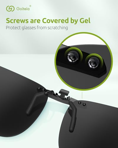 - 🌈【Easy to carry】: Goiteia clip on sunglasses are lightweight and portable. You can clip them on your glasses at any time and anywhere, without the need to carry an extra pair of sunglasses.