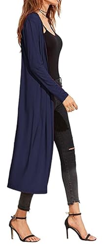 GOSTYLES® Womens Maxi Long Boyfriend Cardigans, Ladies Full Sleeve Collared Top Open Front Cardigan Coat (Navy, 12-14)