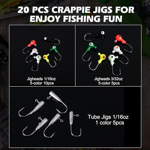 Goture 128Pcs Fishing Crappie Lures Jig Heads Kit, Pre-Rigged Tubes, Soft Plastic Fishing Lure for Crappie, Panfish, Shad Baits, Freshwater, Saltwater