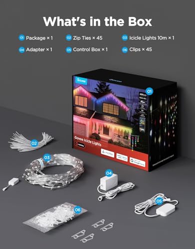 - Smart App and Voice Control: Manage your Govee Christmas Icicle Lights remotely via Govee Home App or Matter, use Alexa or Google Assistant for voice commands, and create immersive lighting with Music Sync and DreamView features.
