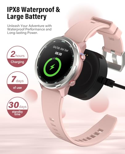 - ❤️【Long-lasting Power Unleash Your Potential】 The smartwatch for men and women is powered by an energy-efficient 300mAh battery, offering quick 2-hour charging and an impressive 7-day usage time, with an astonishing 30-day standby time. The smart watch compatibility with Android 5.0+ and iOS 9.0+ systems, supporting Bluetooth 4.0.