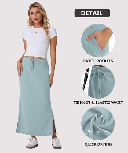 GRECERELLE Womens Maxi Thick Skirts Fall Winter Anti-Wrinkle Casual High Waisted Adjustable Drawstring Skirt with 2 Deep Pockets & Side Slit (Sky Blue, L)
