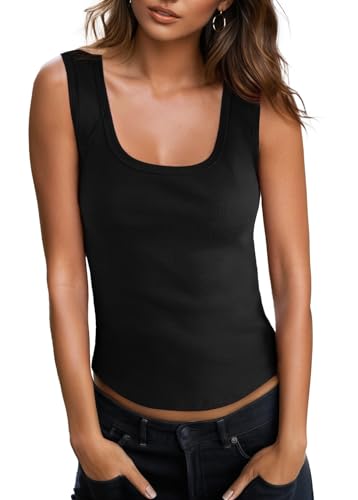 GRECERELLE Womens Summer Vest Soft Breathable Cotton Sleeveless Stretch Scoop Neck Lightweight Casual Tank Tops Camisole for Daily Gym Travel for Women UK (Black, M)