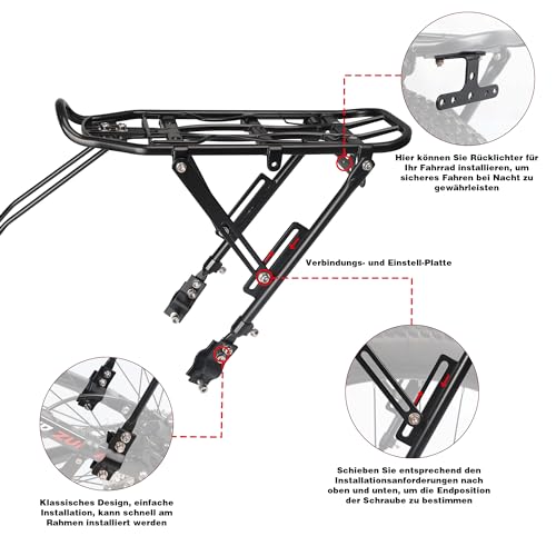Queta Rear Bike Rack, Adjustable Aluminium Alloy, Maximum Load 50kg with Reflector