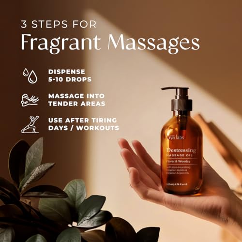 - PERFECT FOR DAILY COMFORT. Gya Labs' Destressing Massage Oil is a body massage oil for men & women that has soothing qualities, making it a suitable warming massage oil for unwinding and post-workouts. Use 2-3 pumps of oil and massage tender areas.