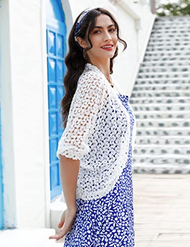 Gyabnw Bolero Shrug for Women Crochet Short Sleeve Cover-Up Summer Jackets Wedding Weddings Evening White