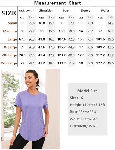 - Material – Womens Short Sleeve Yoga Tops: Women's short sleeve quick dry sports top is made of 92% Polyester and 8% Spandex, which means it iis lightweight, breathable, ultra soft and comfortable, sweat-wicking and skin-friendly fabric makes you more comfortable when exercising