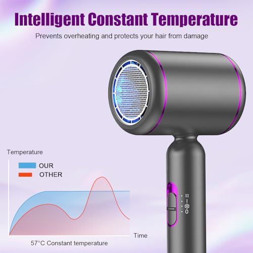 - Lightweight & Quiet Hair Dryer: With foldable handle design, our hair blow dryer is small and ergonomically designed. Incredibly portable and ideal for travel. Equipped with noise reduction technology, it maintains noise levels under 51 dB, quiet and efficient. This travel hairdryer can be used as a birthday, Valentines Day, Mothers Day, Christmas gift or for many other special occasions such as home, travel or salon.