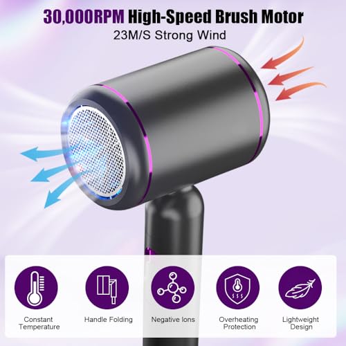 - With Super Powerful Motor: Hair dryer ion are equipped with high speed brush motor of 30,000RPM, which generates a high-velocity intense airflow with 23m/s wind speed to dry hair in only 1-5 minutes. Additionally, hair dryer for men comes with nozzle. Designed to help you dry and style your hair quickly and efficiently, making your daily routine much more convenient