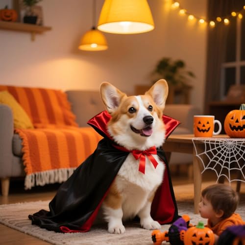 Dress your furry friend in timeless Halloween style with this red-and-black vampire cape, designed especially for small and medium dogs, plus most cats. With a 40 cm back length and adjustable 18–50 cm neck strap, it’s easy to put on and secure, ensuring comfort while your pet looks festive and mysterious.