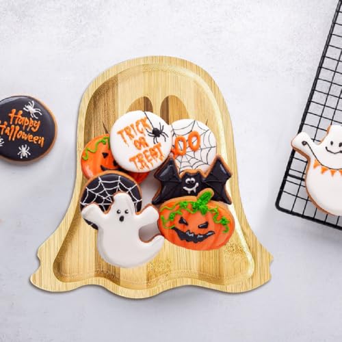 Halloween Pumpkin Plate Halloween Wooden Tray Ghost Serving Tray Desktop Decorative Platters Charcuterie Board for Food Fruits Snack Dessert Tableware Dinner Table Party Supplies Buffet (Ghost)