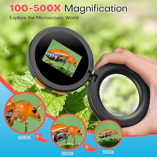 - 500X Powerful Magnification: This kids microscope has 500X magnification ensure you inspect everyday objects in incredible, unseen detail – from bugs to coins to fabric – sparking endless scientific curiosity.