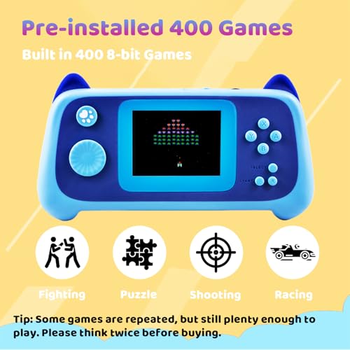 Introducing the ultimate kids handheld game console, featuring 400 built-in retro games! This compact device brings together an array of arcade classics, puzzles, shooting, racing, and more, allowing kids to sharpen their hand-eye coordination, critical thinking, and problem-solving skills while having a blast.
