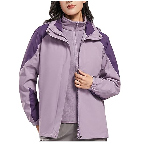 HAOLEI Womens Fleece Jacket 3 In 1 Winter Plush Jacket Waterproof Windproof Coat with Hood Zip Pocket Running Ski Outwear Lightweight Outdoor Warm Thicken Jackets Windbreaker