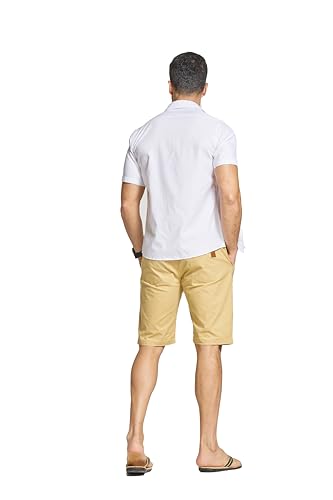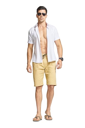 HCSS Mens Casual Shorts Summer Cotton Chino Sports Shorts with Elastic Drawstring Waistband(Khaki-L)