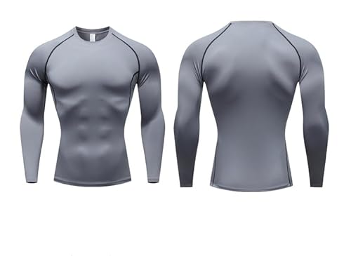 HDAKDDHG Long Sleeve Running Tops Mens,Compression Shirts for Men Long Sleeve Football Undershirt Athletic Dry Shirts Performance Workout Athletic Training Cycling Gym Grey
