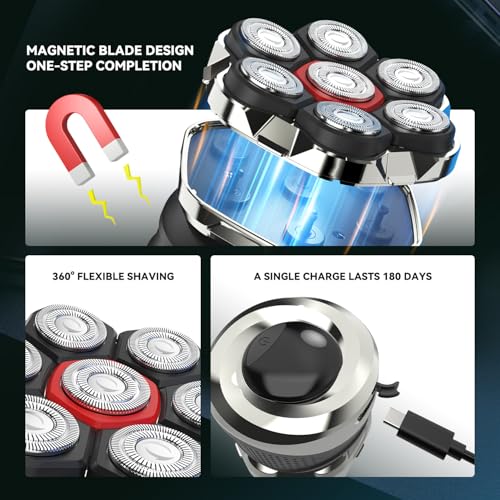 Head Shavers for Bald Men,7D Electric Bald Razor 7DWet/Dry Shaving Professional Grooming Kit for Balder Rechargeable Head Shavers for Scalp/Face/BeardClose Shave