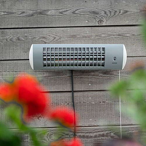 - wall mounted heater patio heating mount three power settings white finish garden terrace balcony gazebo space ambient heat light source indoors outdoors water resistant low cost family party outdoor easy install quartz