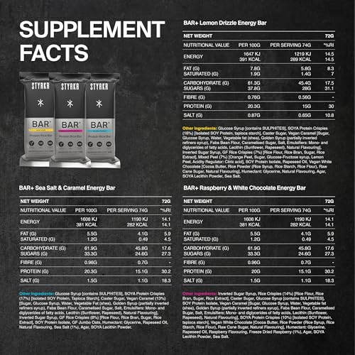 Styrkr BAR+ High Protein Energy Bars – 15g of Protein & 45g of Carbs – Pack of 12 Rice Bars – Mixed Flavours Pack – Approved by Endurance Athletes for Cycling & Running – 12x Pack
