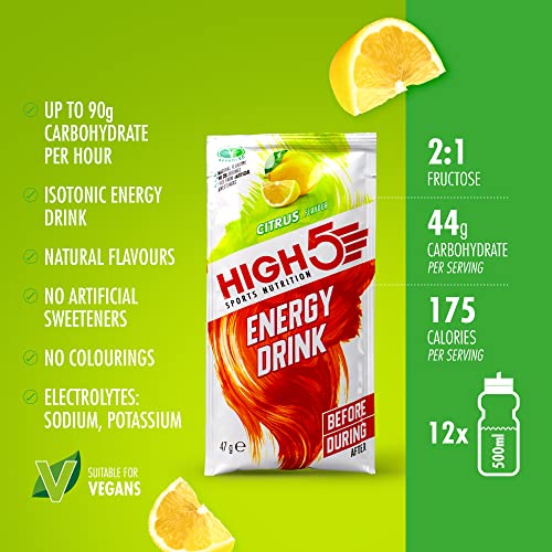 HIGH5 Energy Hydration Drink Refreshing Mix of Carbohydrates and Electrolytes (Citrus, 12 x 47g)