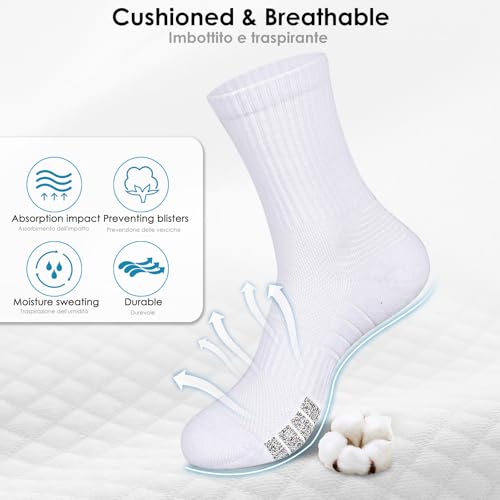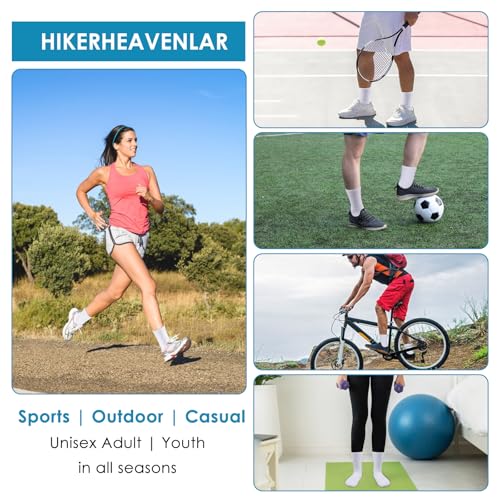 HIKERHEAVENLAR Cushioned Sports Socks Mens Compression Running Socks Women Tennis Breathable Grip Sock Football Basketball Cricket Gym Cycling Hiking Work 4-8 White M 6P