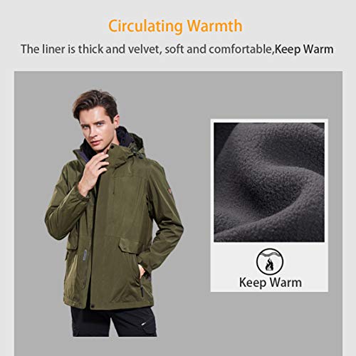 HIOD Men's Jacket Outdoor Long Style 3 in 1 Autumn Winter Waterproof Warm Detachable 2 Piece Coat for Skiing Cycling Hiking,Black,XXL(170-180cm)