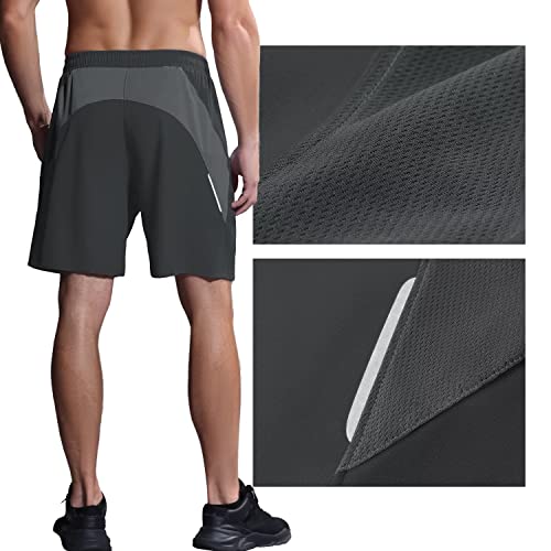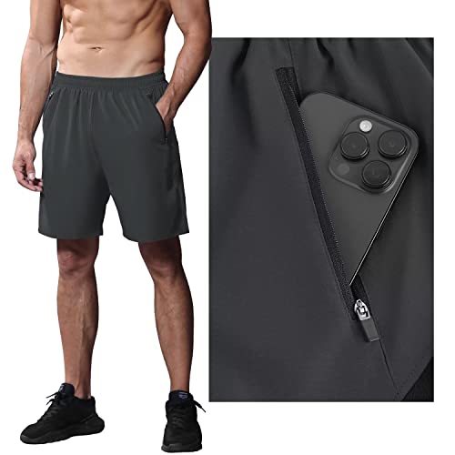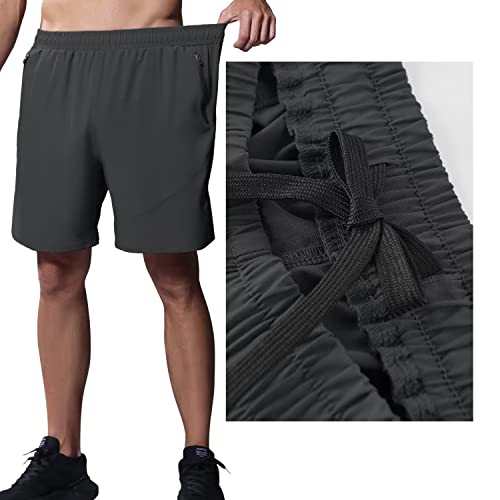HMIYA Men's Sport Shorts Quick Dry Running Gym Casual Short Lightweight with Zip Pockets(Dark Gray,EU-L/US-M)