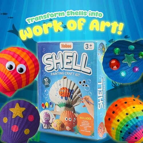 Hobee Sea Shell Painting Arts and Crafts Kit for Kids Aged 4 5 6 7 8 9 10 11 12 Year Old, Creative DIY Birthday Easter Gift For Girls and Boys, includes 10 Large Natural Shells