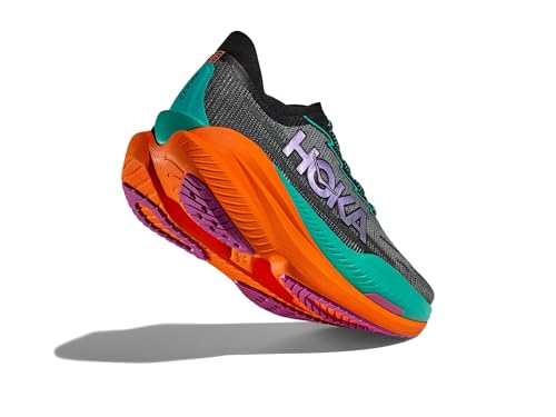 HOKA Women's Mach X 2 Sneaker, Black/Electric Aqua, 8.5 UK