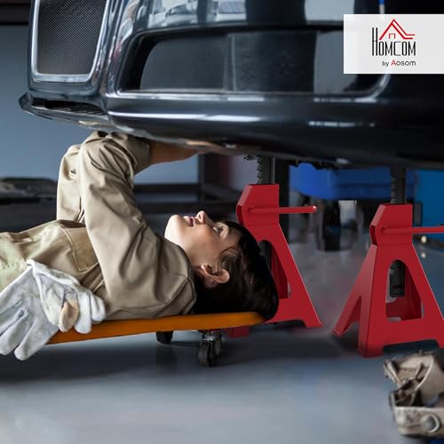 HOMCOM Axle Stands 2 Ton Car Jack Stands Pack of 2, 28-42.5 cm Height Adjustable Support Jack Stand, Heavy Duty Car Lift Tool for Vehicles, Caravans, Workshops, Garages, Red