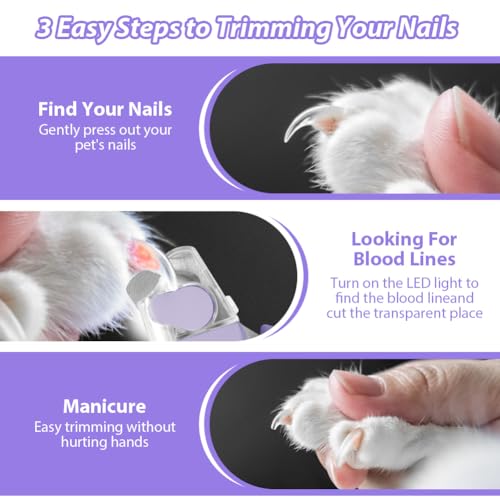 - Super Bright LED Light: Illuminates the inner blood line of your cat's nails, allowing for precise trimming, significantly reducing the risk of over-trimming, preventing bleeding and bacterial infection. Even in low-light conditions, trimming is easy.
