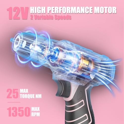 Sundpey Tool Kit with 12V Drill – Cordless Power Drill Tool Set – Protable General Basic Complete Home and Auto Repair Tools Set – Pink Tool Kit for Women with Wrench & Socket & Screwdriver Kit