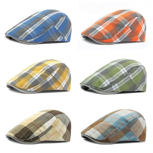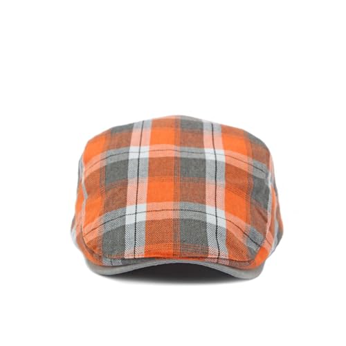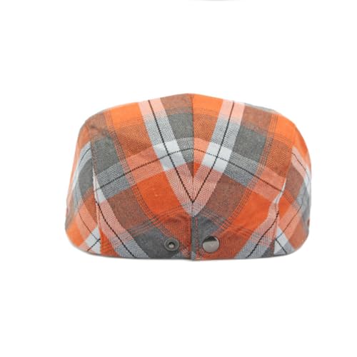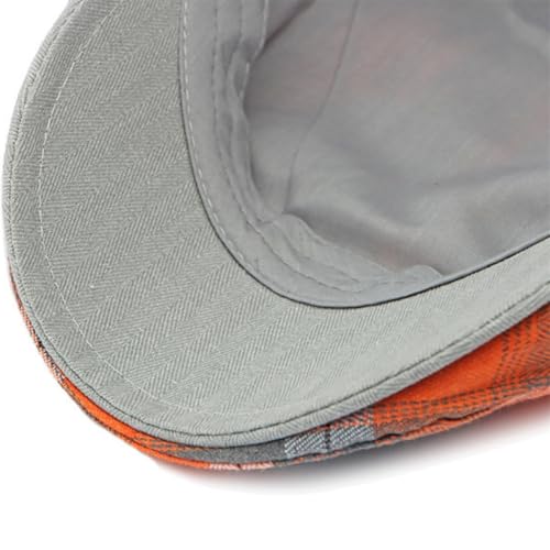 howkuhat Mens Flat Cap Plaid Pattern Gatsby Irish Men's Flat Caps Newsboy Cap for Men Adjustable Golf Driving Hator Flat Caps for Men Unisex Hat for Spring Autumn (UK, Alpha, One Size, M, Orange)