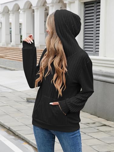 iChunhua Basic Plain Hoodie Women Warm Long Sleeve Sport Top Thin Hooded Sweatshirt With Pocket Black M