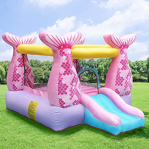 - Maximum Safety Protection – With the safety of children in mind, we have added comprehensive safety details to the bouncing castle. The jumping area is surrounded by the mesh protective walls, while ensuring excellent air circulation. There are raised handrails on both sides of the slide to protect children. Equipped with ground stakes to keep the inflatable jumper and blower out of the wind